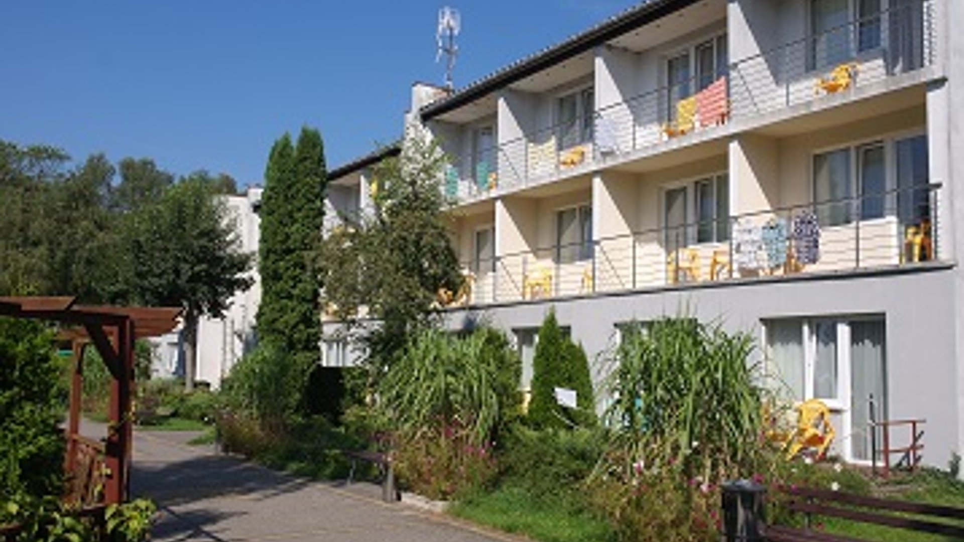 Auf dem Campgelände (videoüberwacht) befinden sich ein Garten mit einem Café, ein